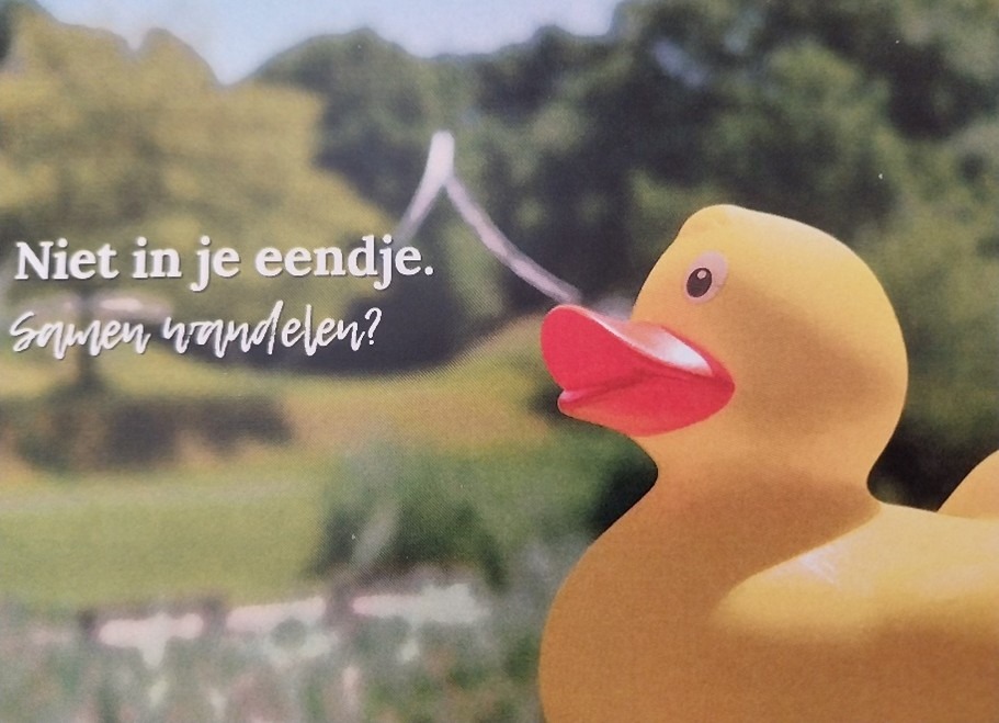 Waarom organiseren we dit? In de (landelijke) Week van de Ontmoeting , ook wel Week tegen de Eenzaamheid genoemd, worden allerlei dingen georganiseerd waarbij ontmoeten centraal staat. Dat is precies waarvoor we KrachtigPlus hebben opgezet. Van Houten en co heeft als motto ‘Niet in je eendje’ met een knipoog naar ‘ééntje’ en heeft een gele eend als beeldmerk gekozen. Wij mogen daar ook gebruik van maken, dat ga je zien!